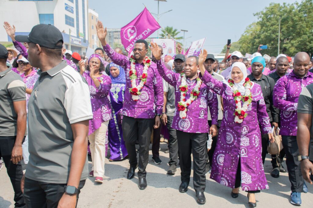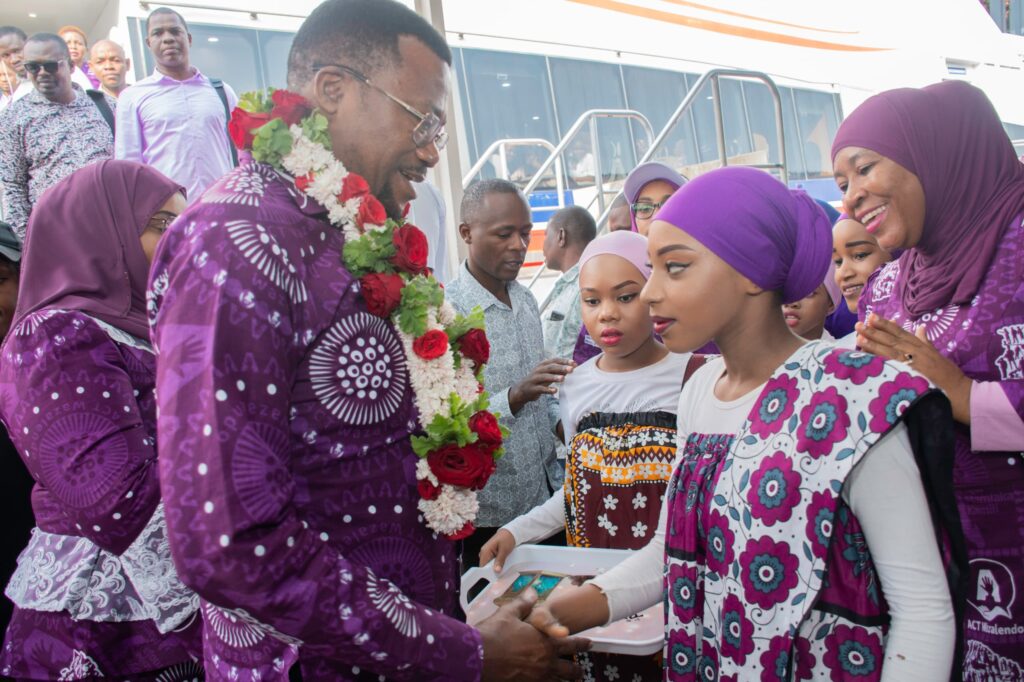 Mgombea wa Urais wa Jamhuri ya Muungano wa Tanzania kwa tiketi ya ACT Wazalendo,Luhaga Mpina, Mgombea Mwenza wa Urais wa Jamhuri ya Muungano wa Tanzania, Fatma Ferej na Mgombea wa Urais wa Zanzibar, Othman Masoud Othman wamepokelewa na maelfu ya wanachama wa ACT Wazalendo na wananchi wa Zanzibar kwa ajili ya kujitambulisha upande wa Unguja leo tarehe 9 Agosti 2025.