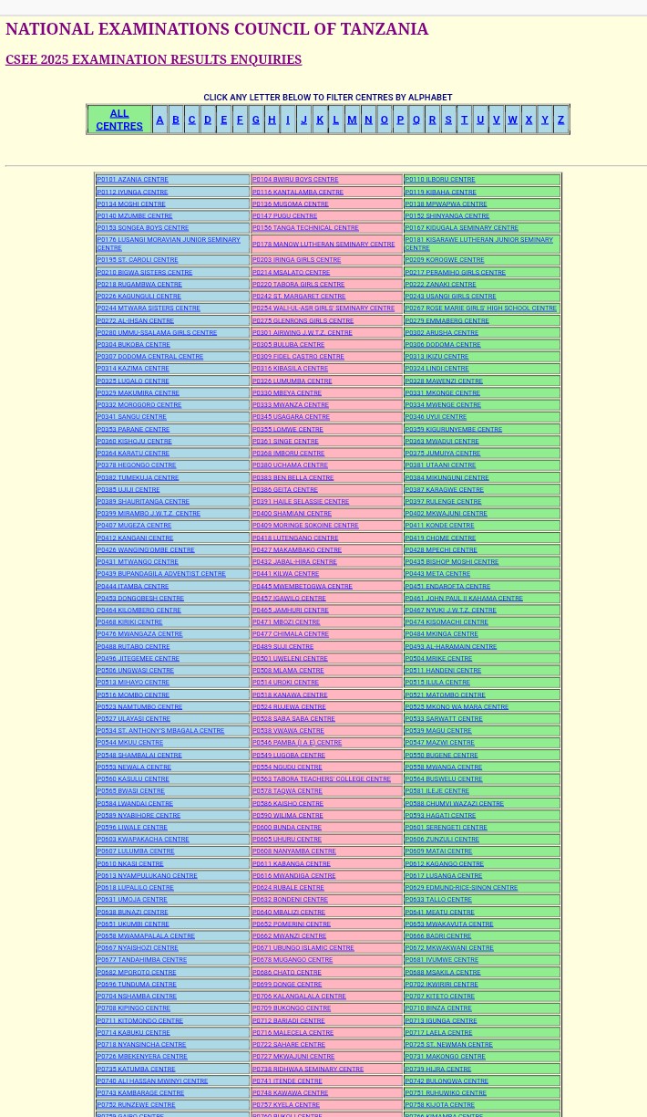 Kutazama matokeo ya kidato cha nne 2025 bonyeza kiunganishi 👉 https://matokeo.necta.go.tz/results/2025/csee/index.htm?fbclid=IwdGRjcAPqoyBjbGNrA-qjEGV4dG4DYWVtAjExAHNydGMGYXBwX2lkDDM1MDY4NTUzMTcyOAABHkQBbBn_5F-45Ogz7oTIB5RoiDEVuHxQn3FgWIg9NXy4BLlNV6cjvxYsVGVl_aem_Bln9dk02YC7DuP6J2NDKwA Post Views: 1,531 Continue Reading Previous PBPA yafungua Milango kwa Vijana wa Uhandisi wa Mafuta kutoka UDSM na DMINext Siku 100 za Rais Samia mpango wa ‘KKK’ watekelezwa More Stories Habari Wanawake jumuia ya kikristo Tanzania CCT wafundana kuelekea siku ya Wanawake Duniani March 7, 2026 Israel Mwaisaka Habari Dkt.Tulia,Mwalunenge waungana kutatua changamoto ya barabara March 7, 2026 zena chitwanga Habari TUCASA yaomba kuanzishwa sheria malipo sekta ya ujenzi March 7, 2026 Judith Ferdnand