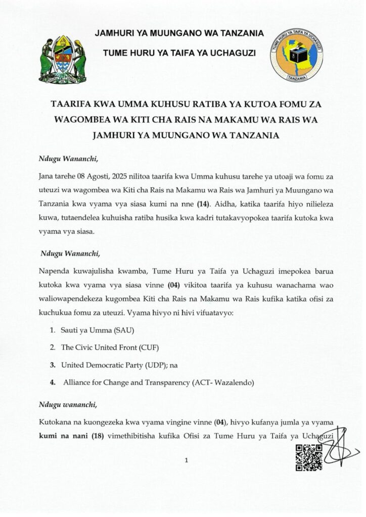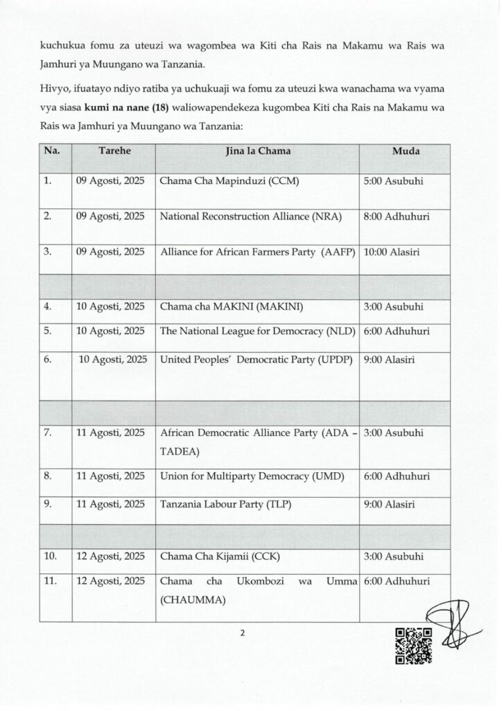 Tume yatoa ratiba mpya Vyama vitakavyochukua fomu vyaongezeka