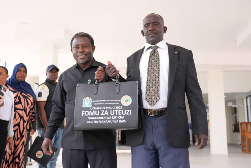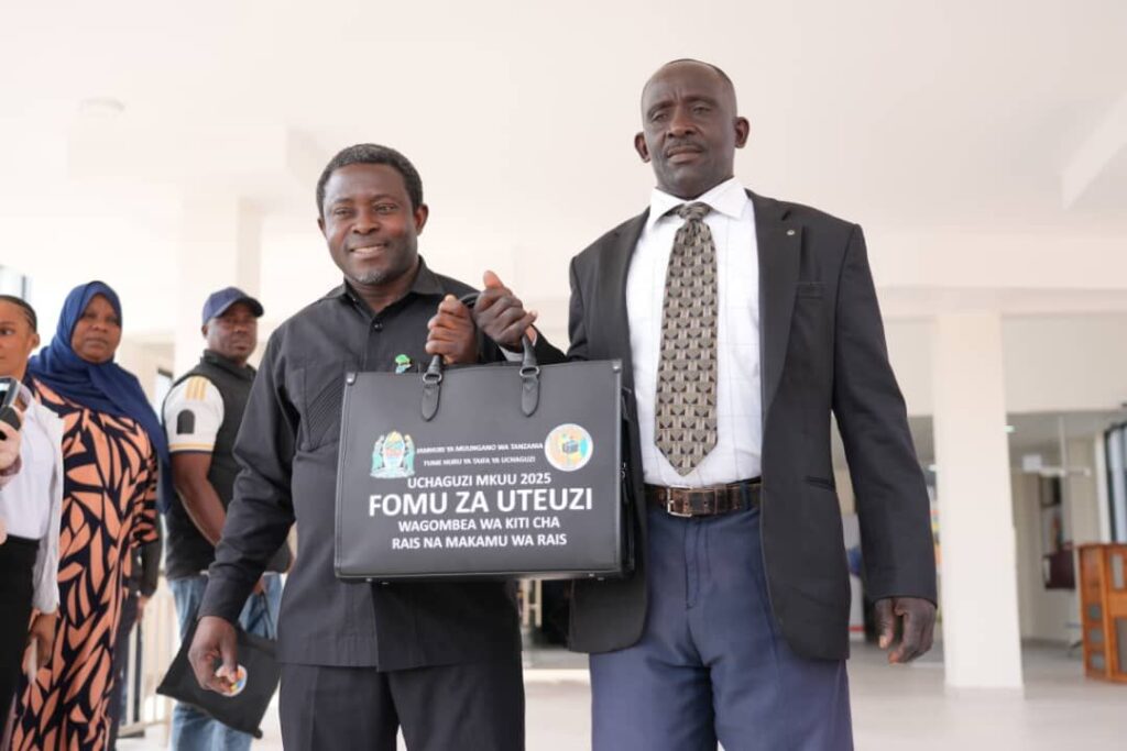 MGOMBEA wa Urais na Mgombea mwenza kutoka Chama cha National Reconstruction Alliance (NRA) Hassan Almasi na Ally Hassan wamekuwa wa pili kuchukua fomu ya kuombea Urais katika Ofisi za Tume huru ya Taifa ya Uchuguzi jijini hapa leo Agosti 9,2025.