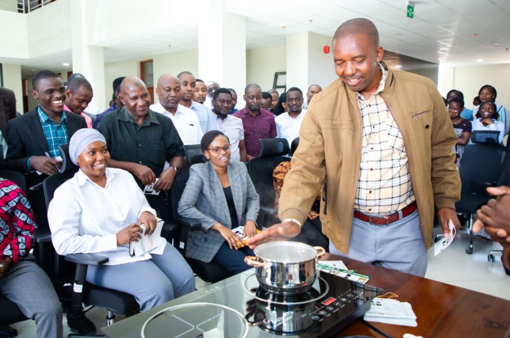 Watumishi wa Wizara ya Nishati wamepata elimu ya matumizi bora na sahihi ya majiko yanayotumia umeme kidogo ( Induction cookers), baada ya kukabidhiwa majiko hayo na Naibu Waziri Mkuu na Waziri wa Nishati, Dkt. Doto Biteko hivi karibuni.